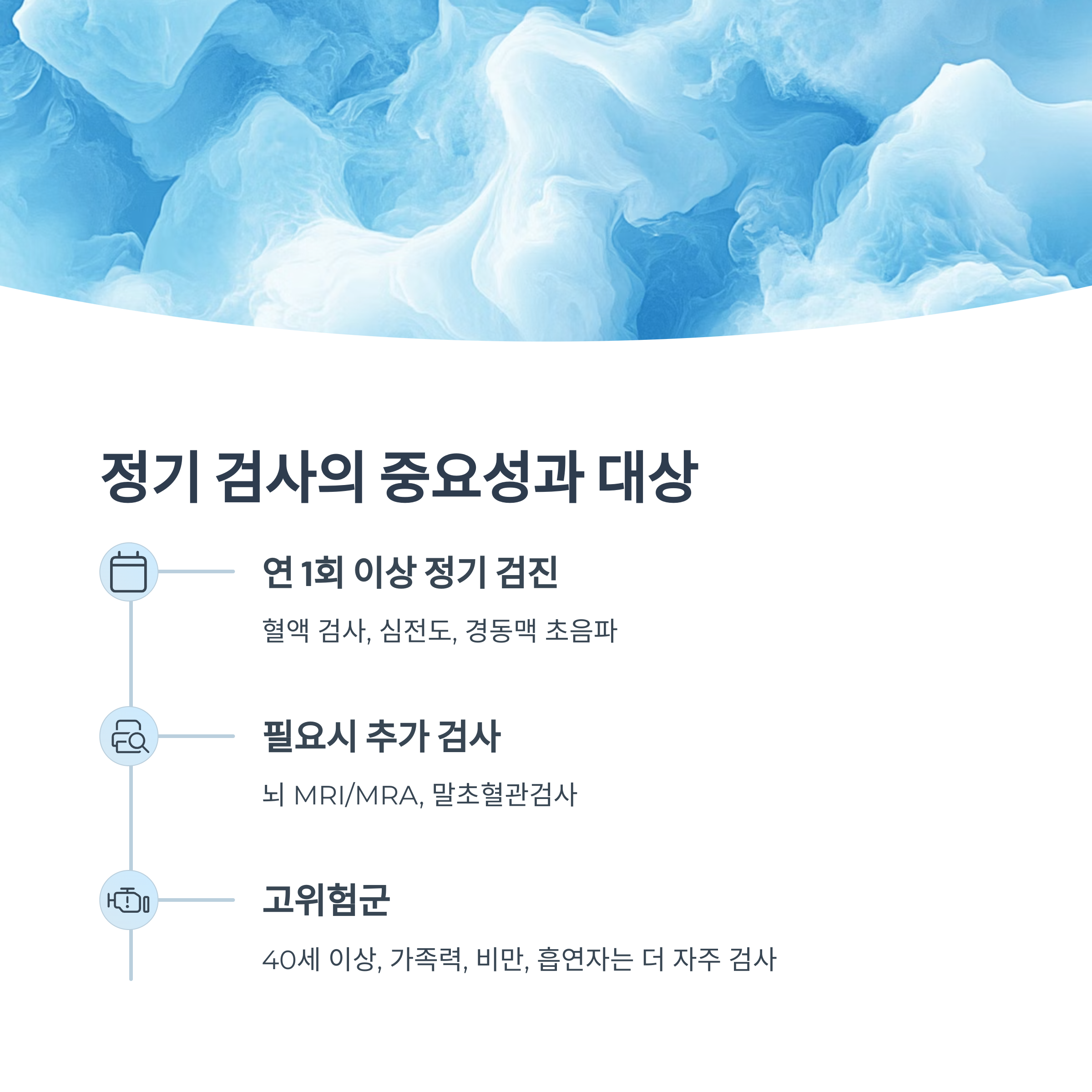 고혈압과 당뇨병을 앓고 있는 사람은 단순한 건강검진을 넘어서, 뇌졸중 예방을 위한 특화된 검사를 주기적으로 받는 것이 필수입니다.