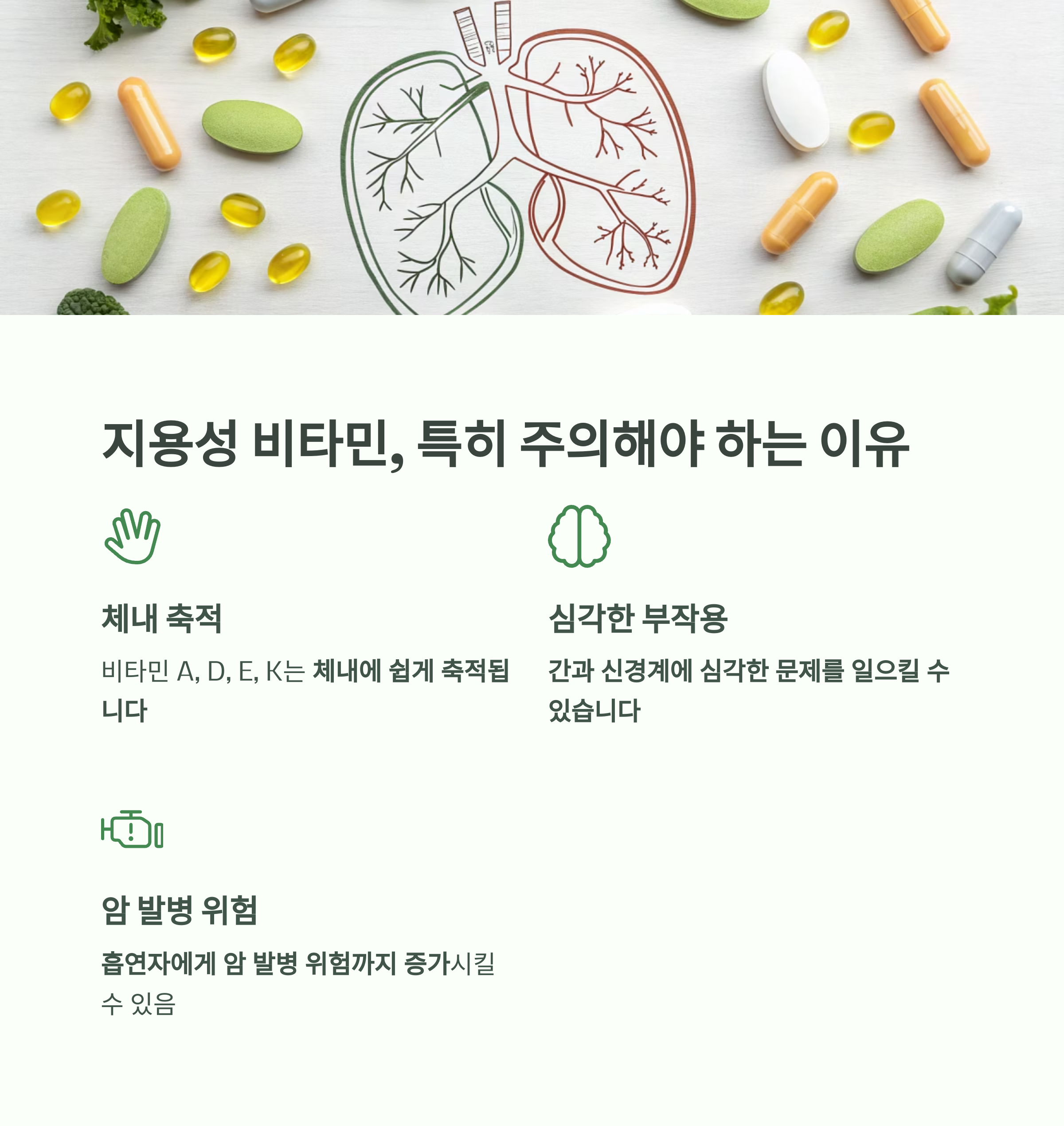 또한 일부 지용성 비타민은 흡연자에게 암 발병 위험까지 증가시킬 수 있어