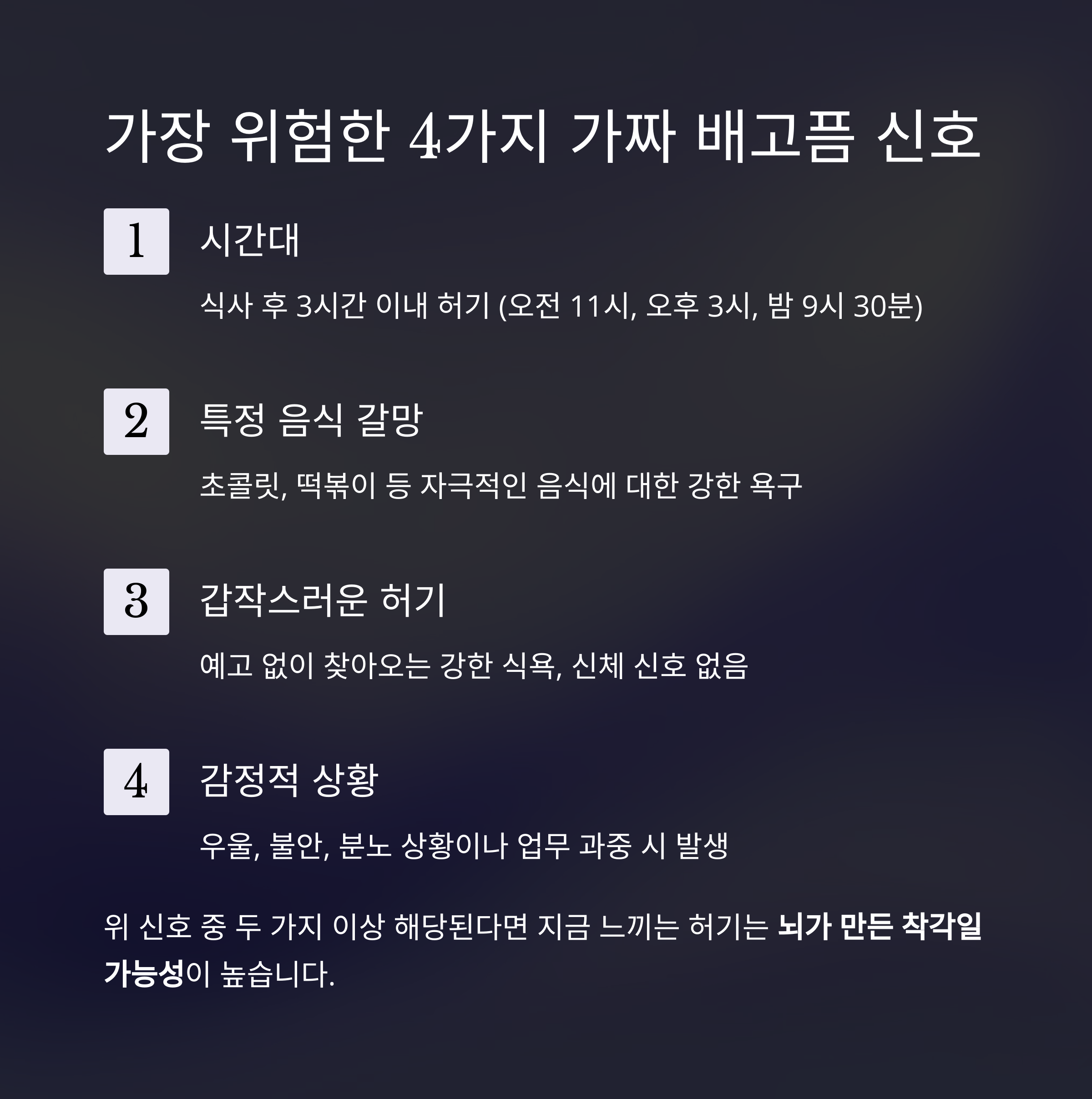 이 신호를 무시하면 비만, 대사 질환, 정신적 피로로 이어질 수 있습니다