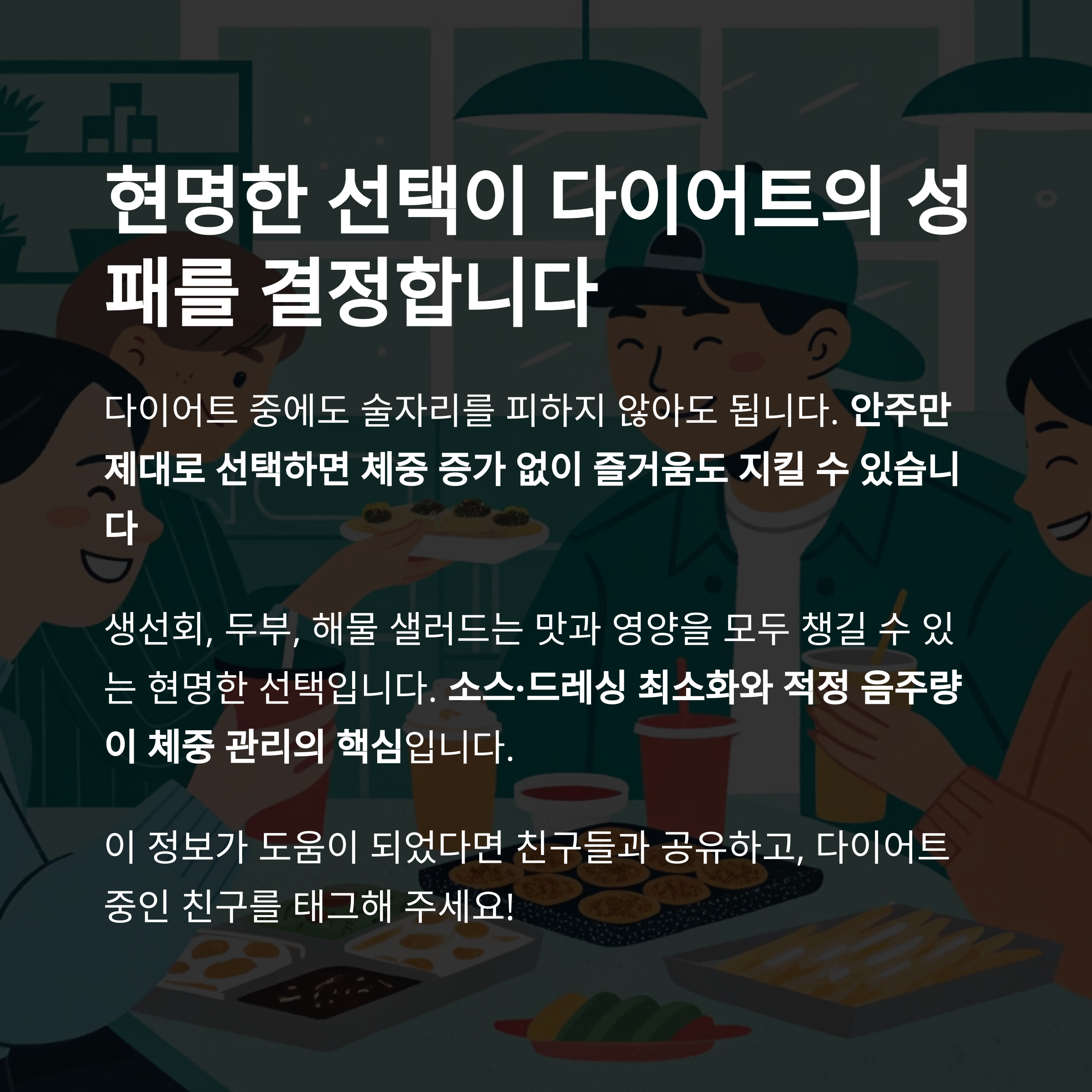 소스·드레싱 최소화와 적정 음주량이 체중 관리의 핵심입니다