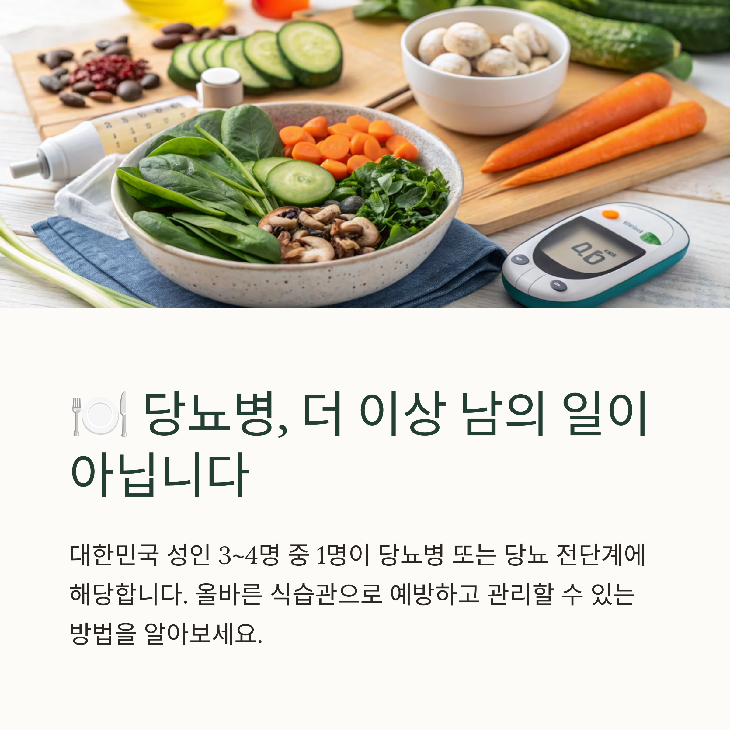 당뇨병은 관리 가능한 질환입니다. 핵심은 ‘지속 가능한 식사법’을 찾고 이를 꾸준히 실천하는 것입니다.