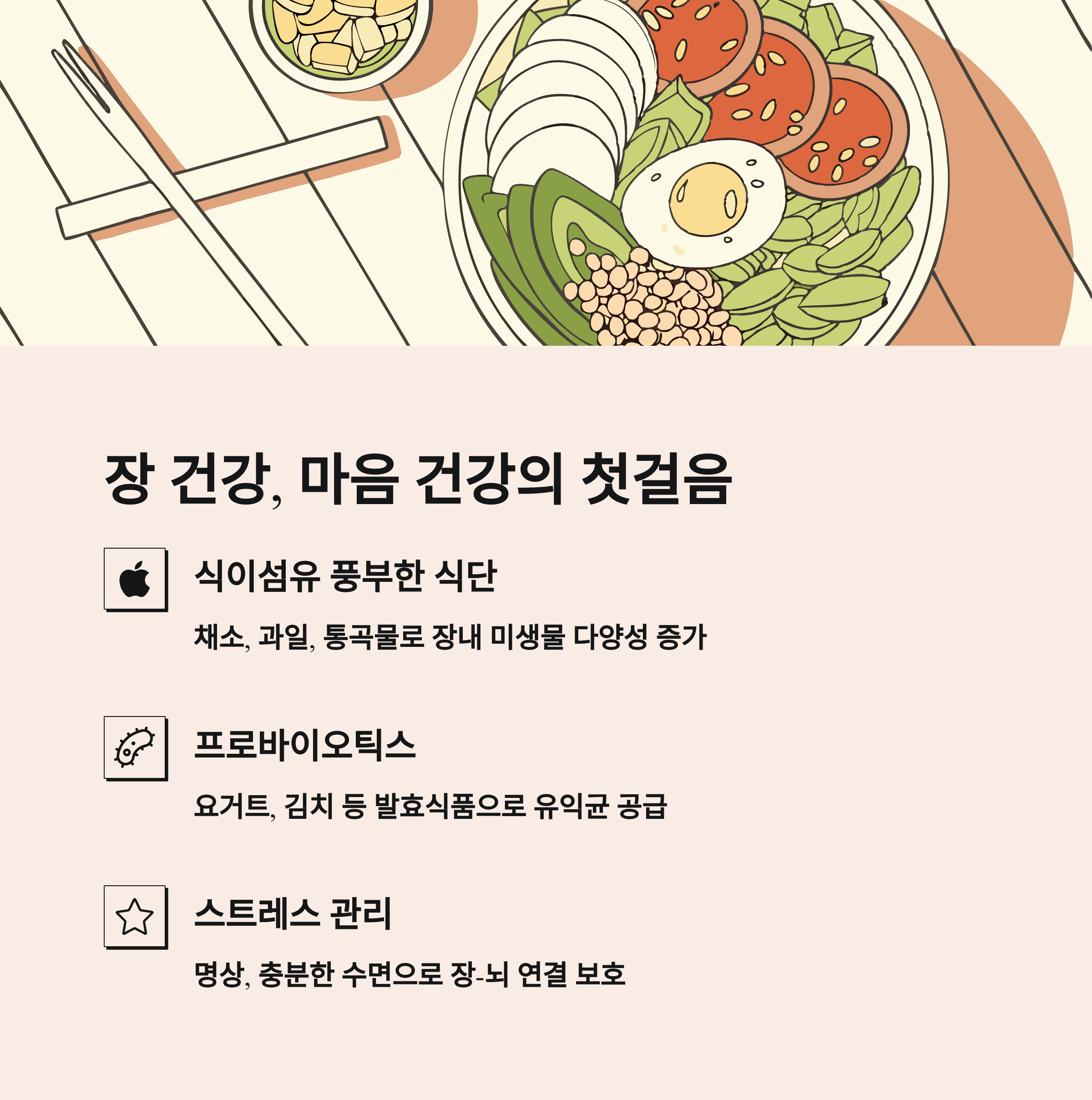 | 유전체 연구로 과학적 증거 강화 | 프로바이오틱스·프리바이오틱스로 개선 가능 | 장 건강이 곧 정신건강 |