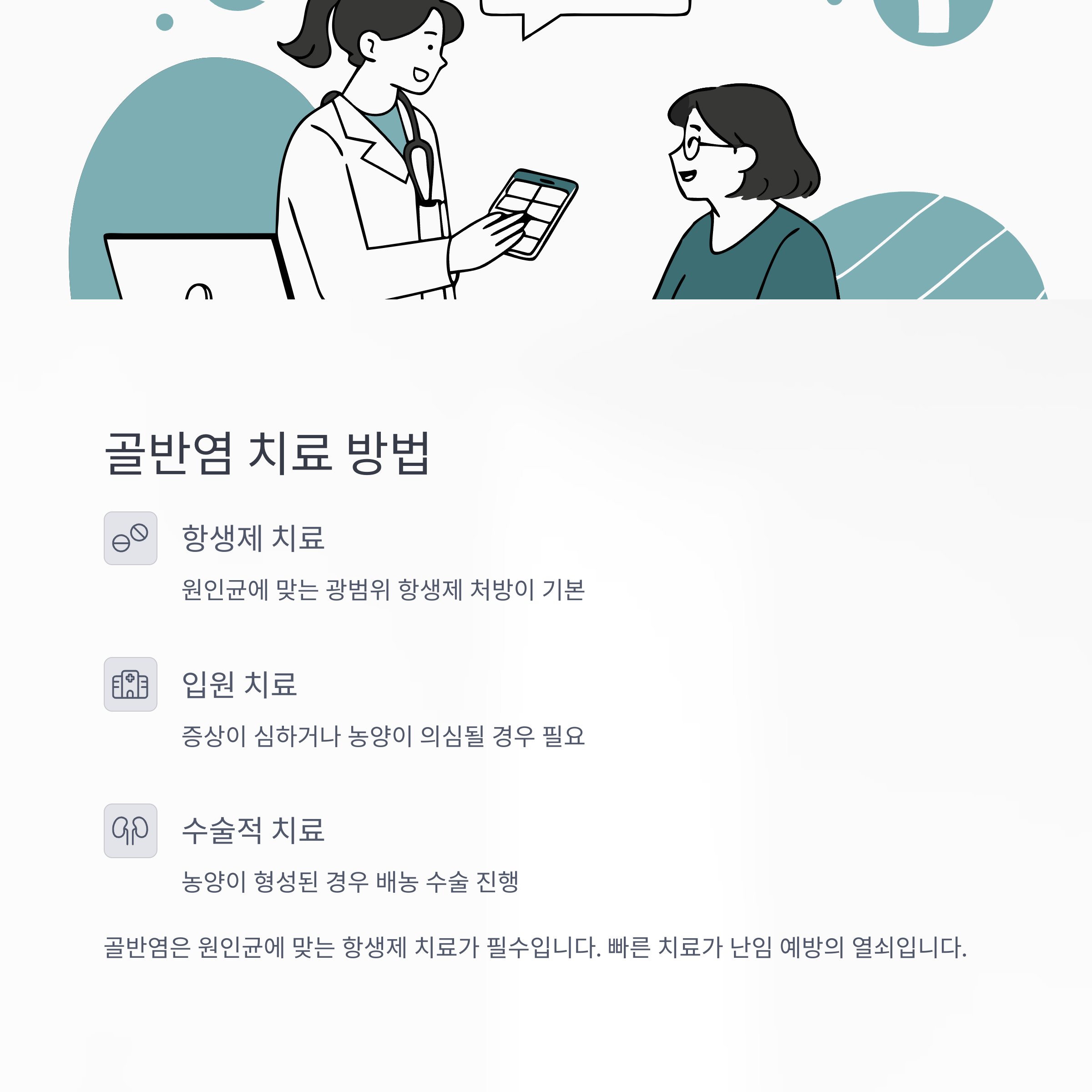 골반염은 원인균에 맞는 항생제 치료가 필수입니다.