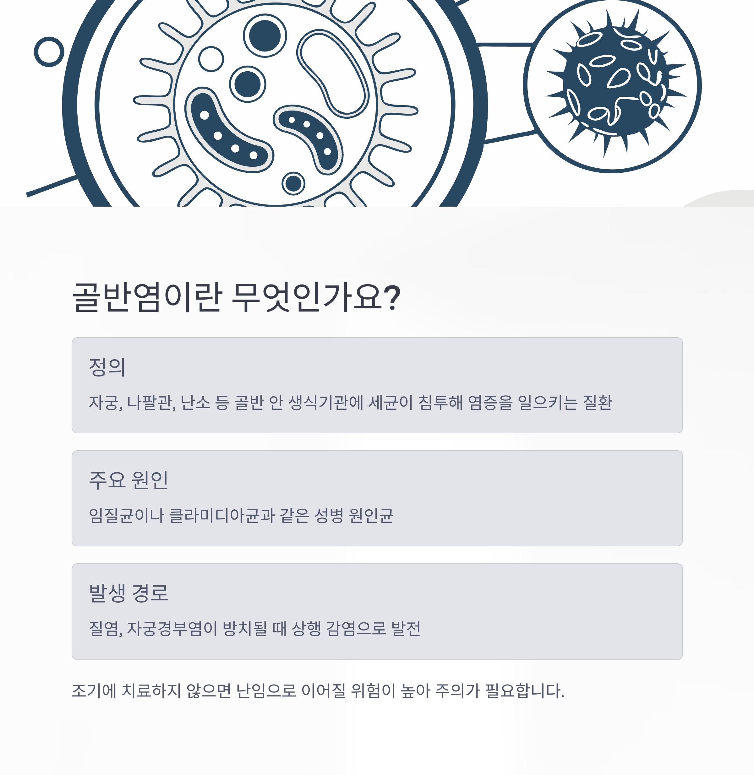 질염, 자궁경부염이 방치될 때 상행 감염으로 발전하기도 합니다.