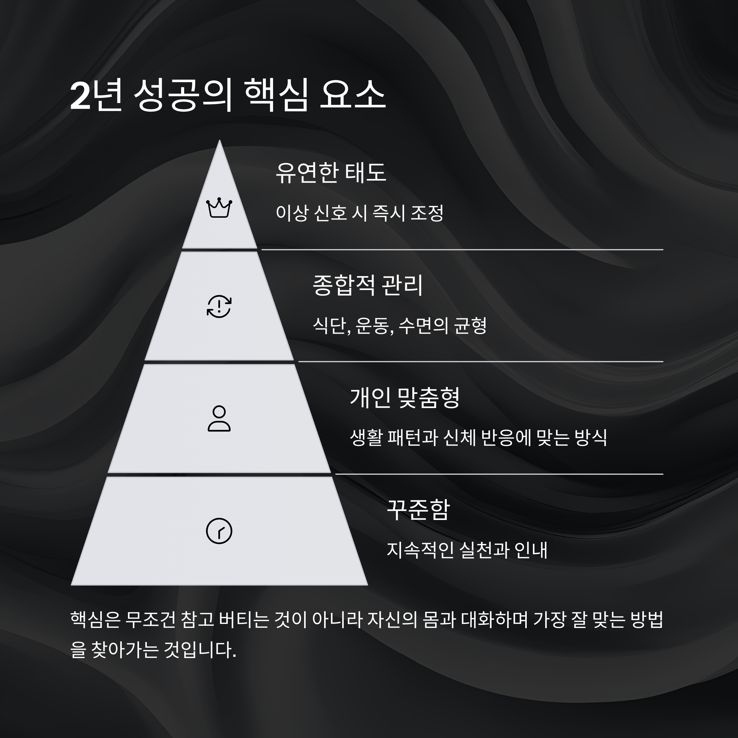 꾸준함, 유연함, 그리고 나에게 맞는 방식을 찾는 것입니다.