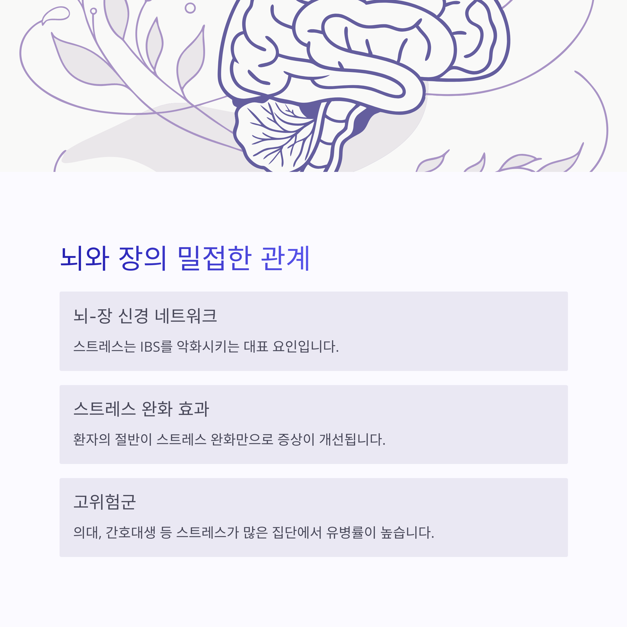 심리적 안정이 IBS 관리에 핵심적인 역할을 합니다.