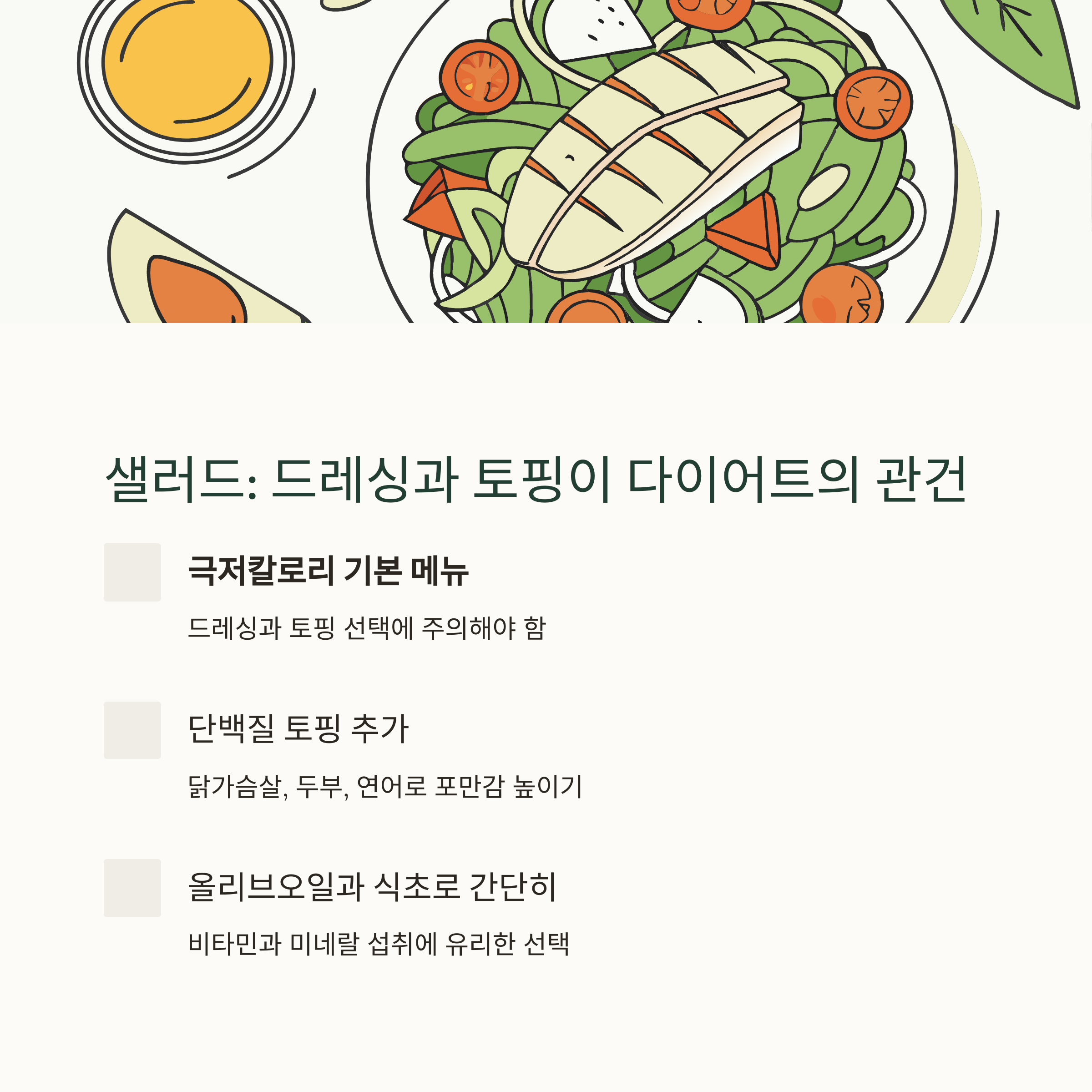 샐러드는 드레싱과 토핑 선택이 다이어트의 관건