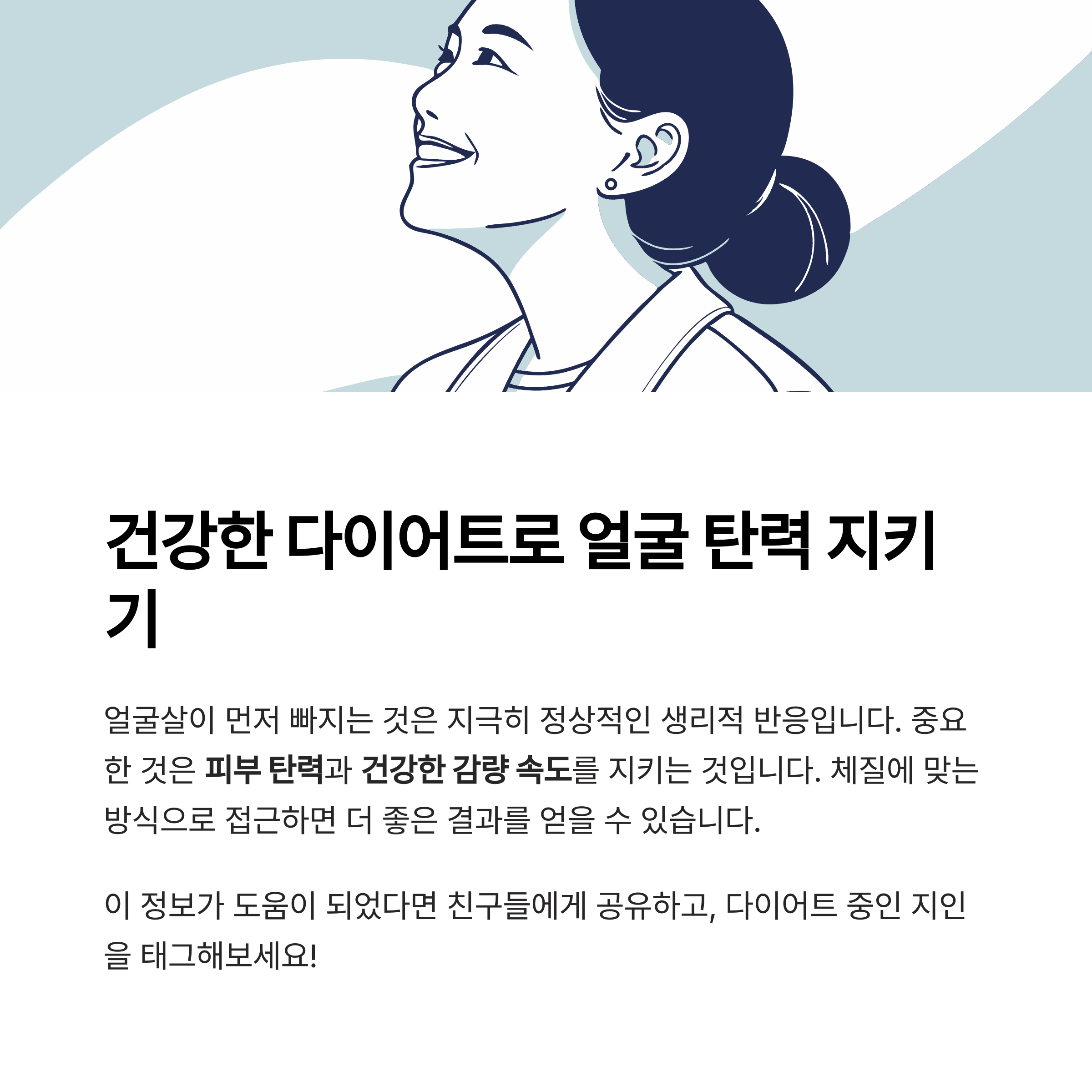 중요 포인트는, 얼굴살이 빠지는 속도만큼이나 "피부 탄력"과 "건강한 감량 속도"를 지키는 것입니다.