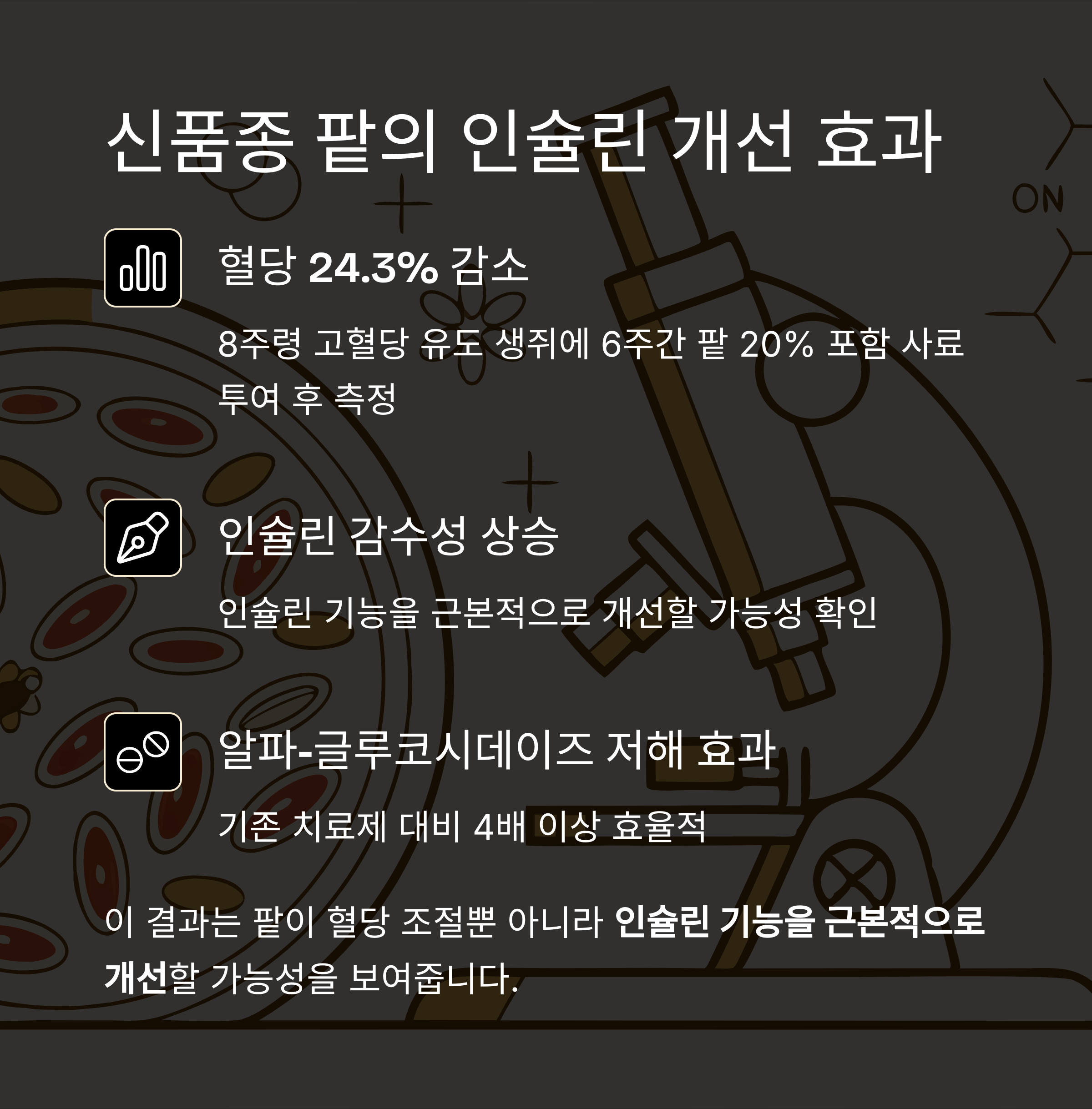 이 결과는 팥이 혈당 조절뿐 아니라 인슐린 기능을 근본적으로 개선할 가능성을 보여줍니다
