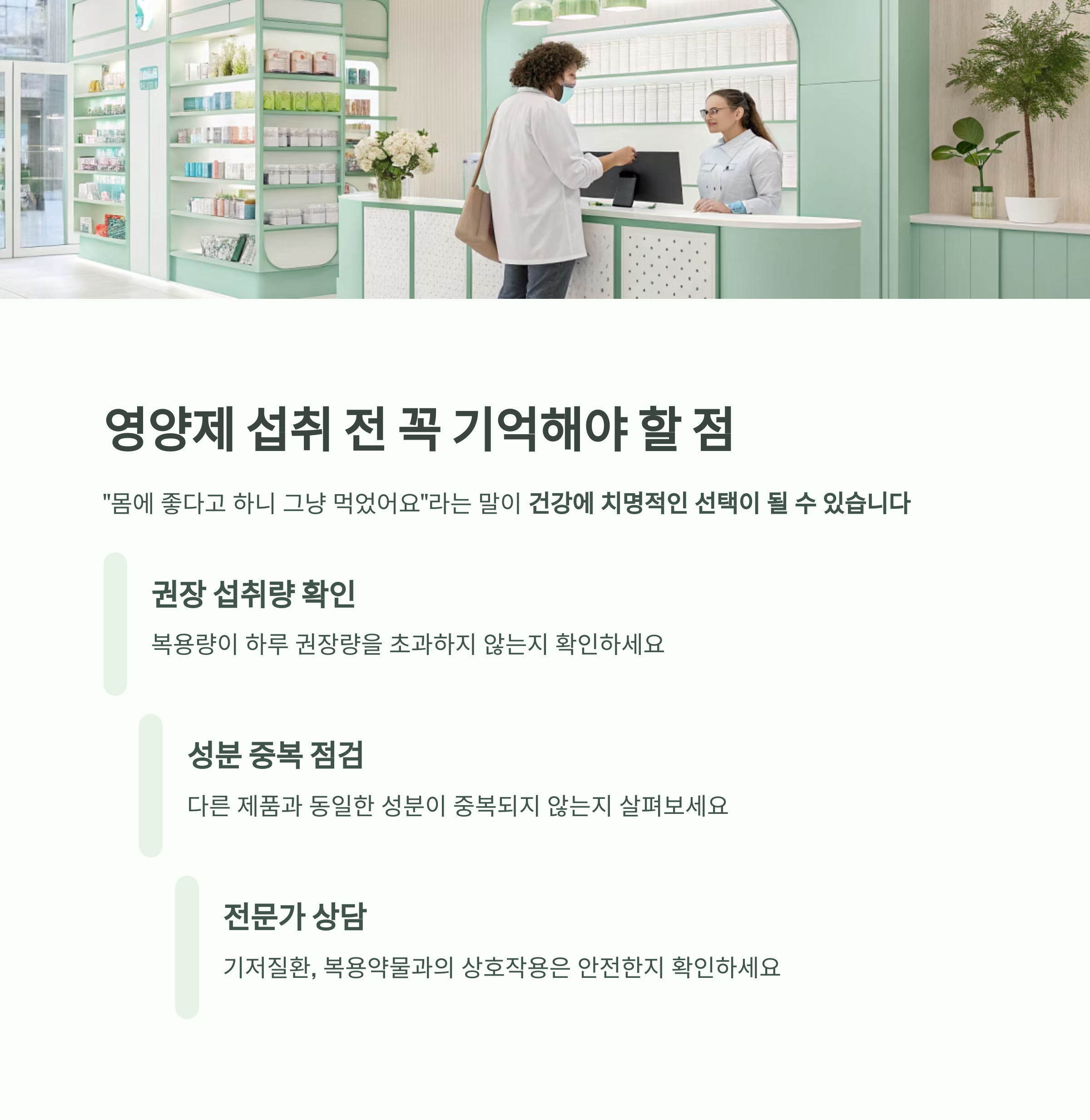 영양제는 건강을 위한 선택이지만, 잘못된 복용은 오히려 건강을 위협할 수 있습니다