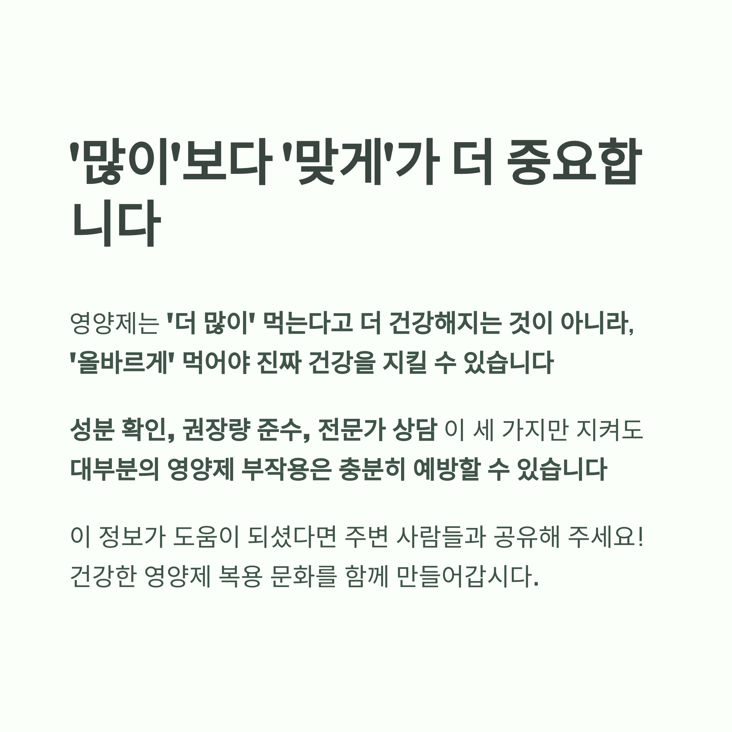 영양제는 '더 많이' 먹는다고 더 건강해지는 것이 아니라,