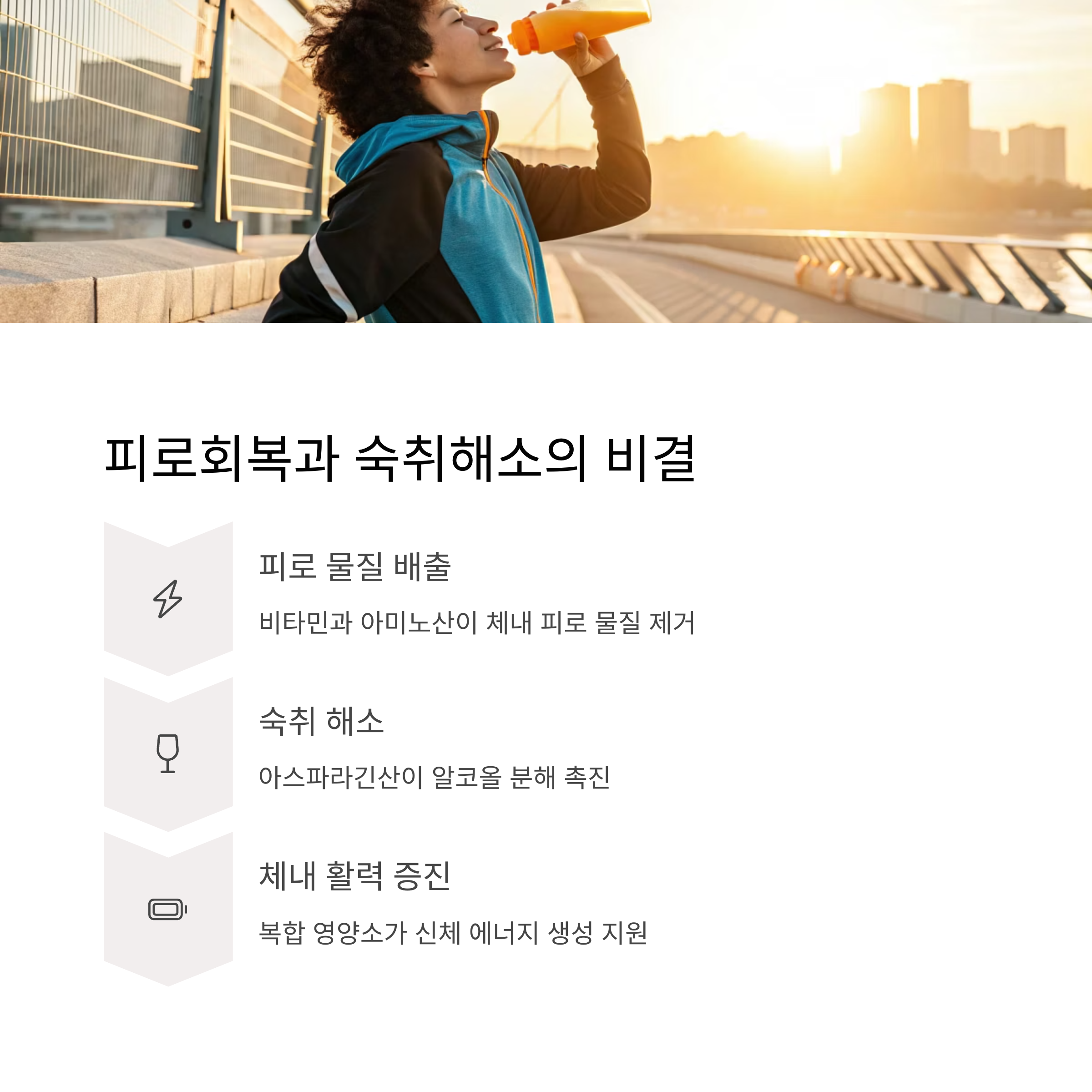 피로 물질을 배출하고 체내 활력을 높이는 데 도움을 줍니다.