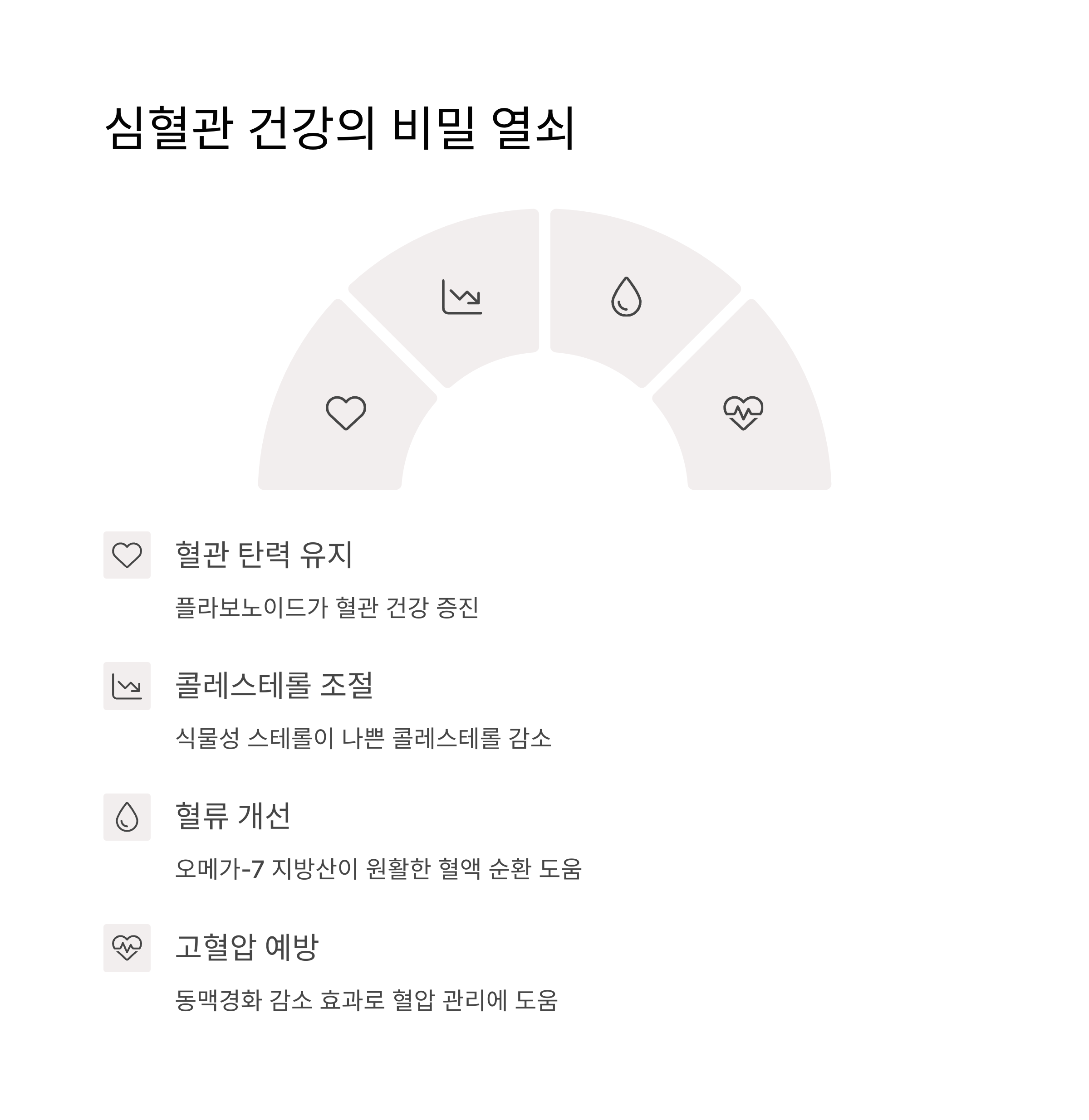 혈관 탄력 유지, 콜레스테롤 조절, 혈류 개선에 탁월합니다.