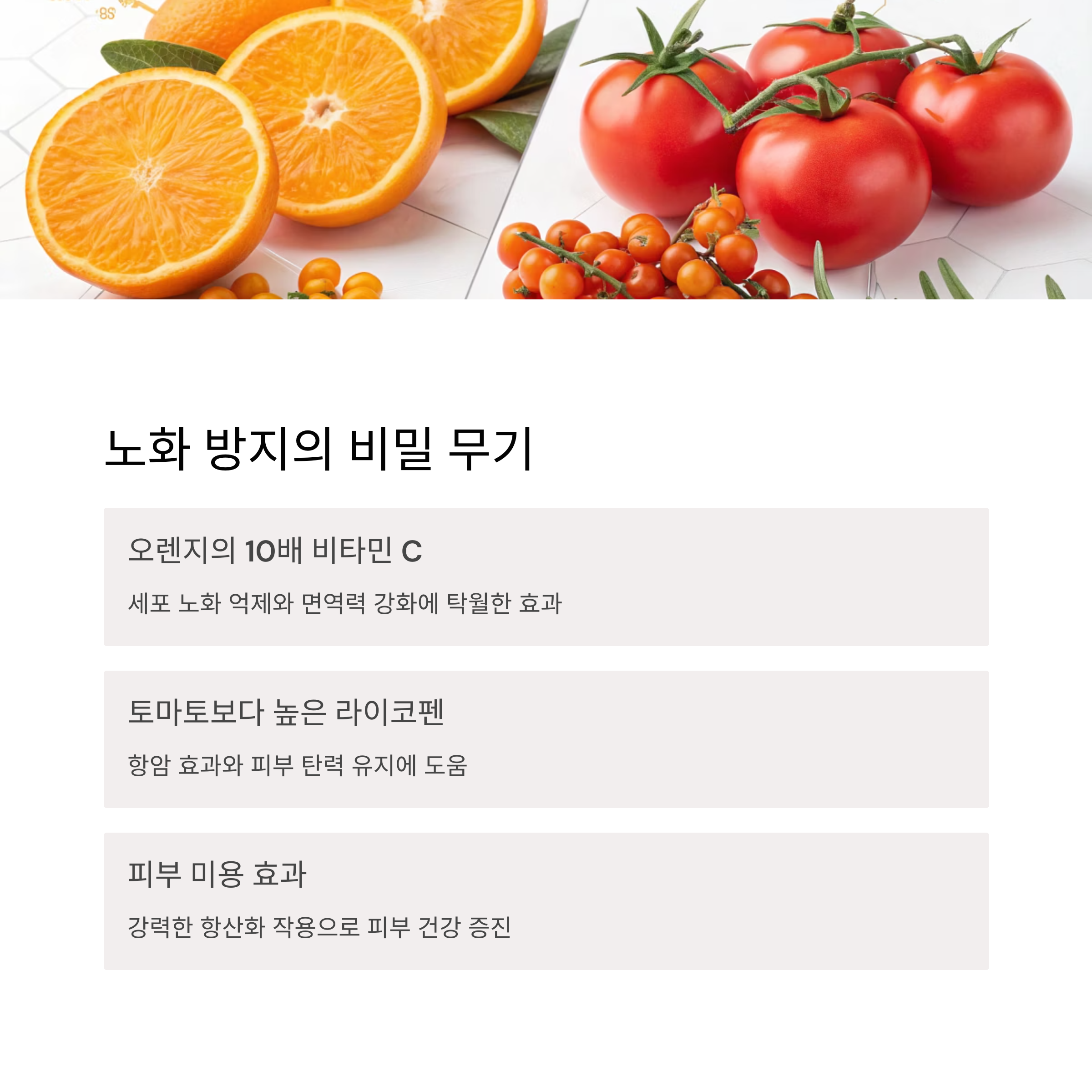 이로 인해 세포 노화 억제, 피부 미용, 면역력 강화에 탁월한 효과를 발휘합니다.