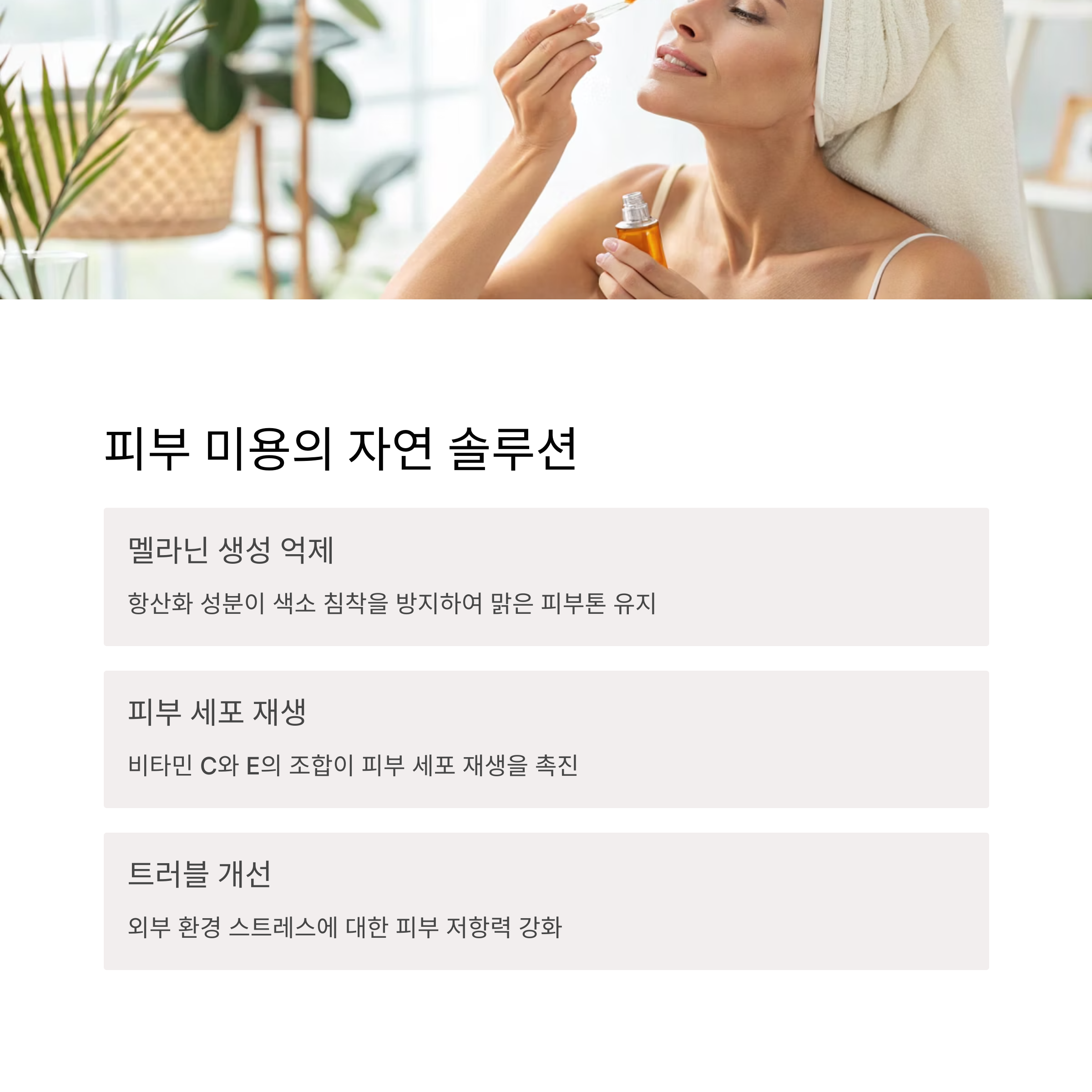 피부 세포 재생을 도와 생기 있고 맑은 피부를 유지하게 합니다.