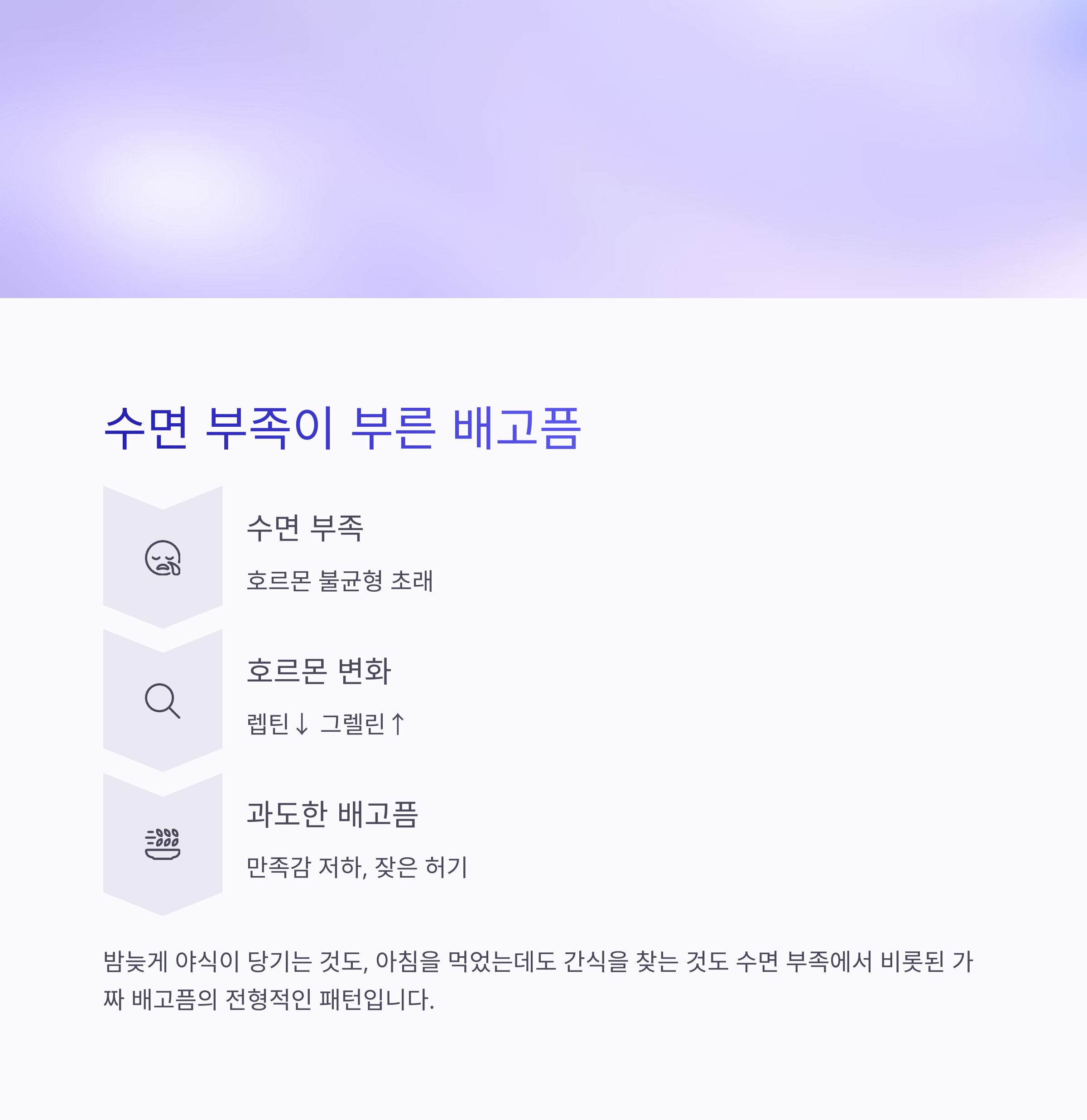 수면 부족에서 비롯된 가짜 배고픔의 전형적인 패턴입니다