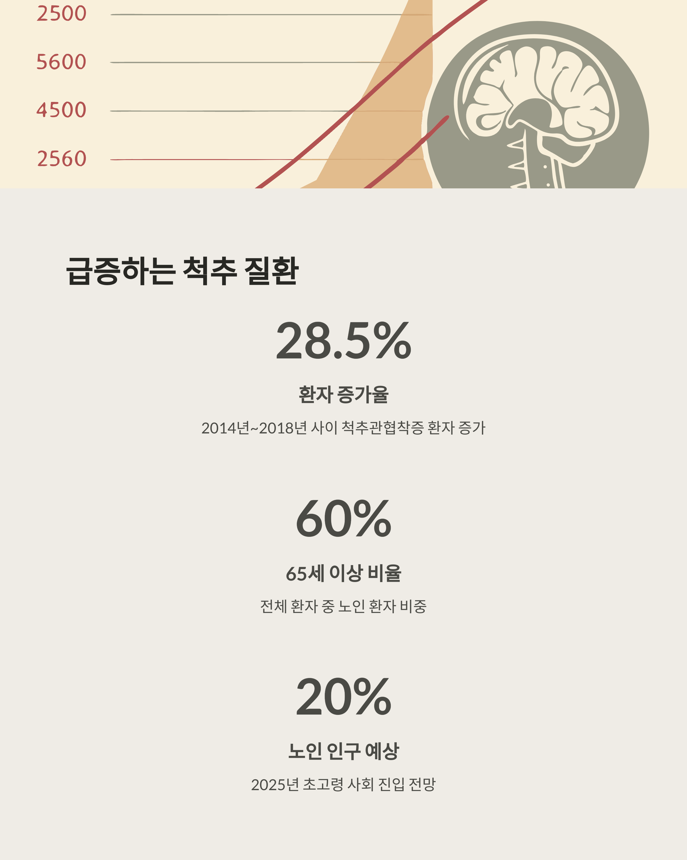 이러한 인구 구조 변화는 척추 질환의 대중화를 가속화하고 있습니다.