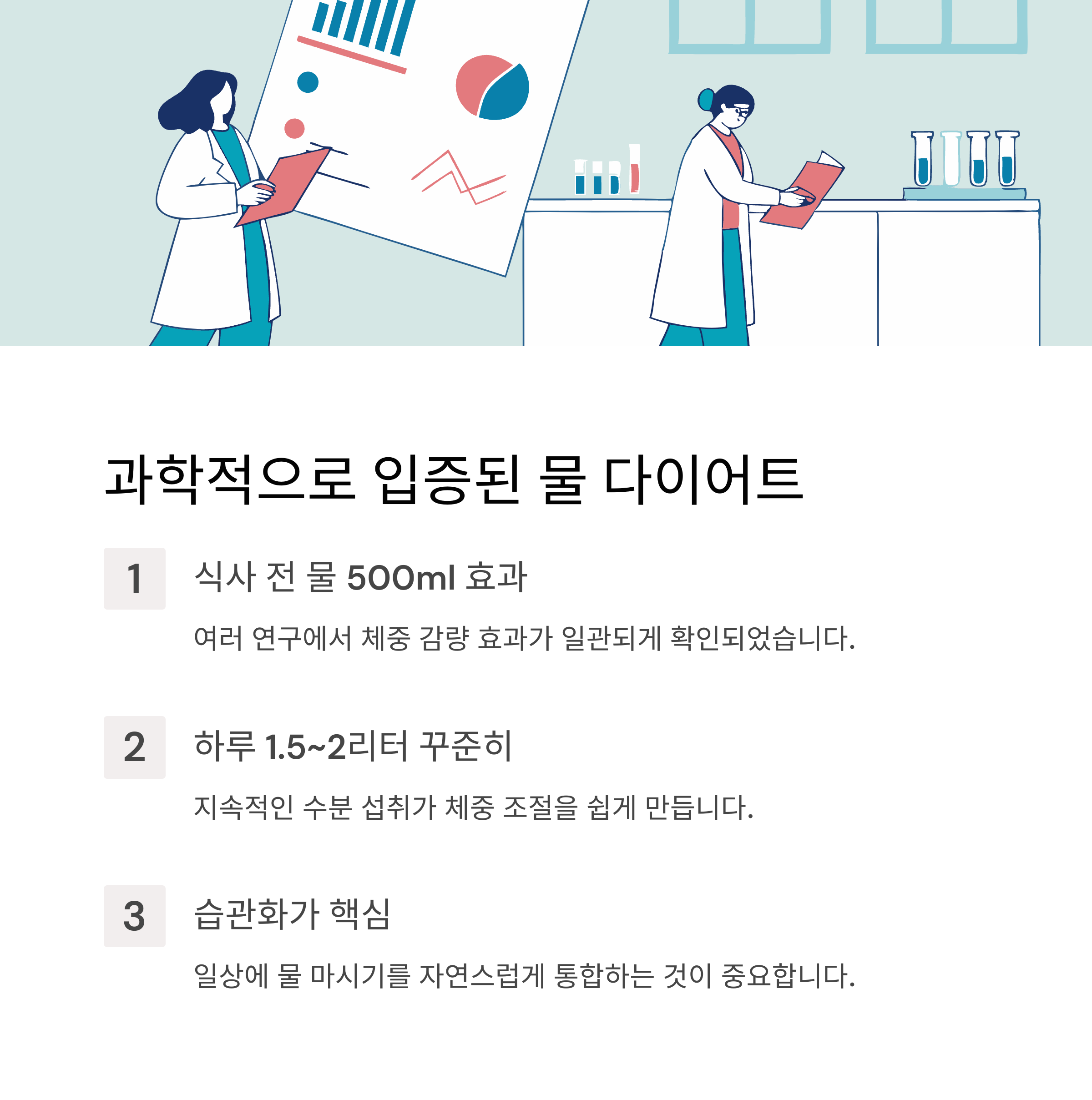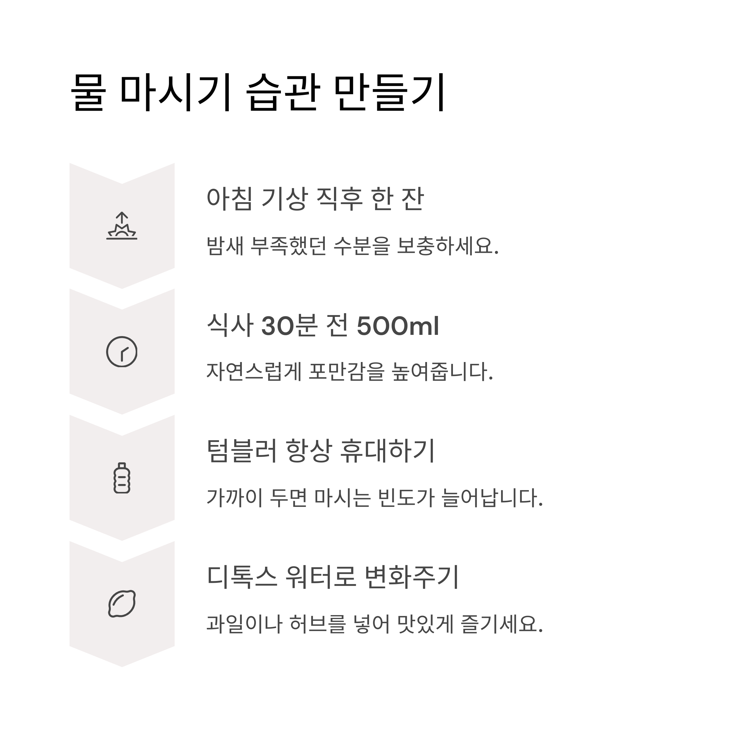 신진대사를 깨우는 첫 걸음을 시작하세요. - 식사 30분 전 500ml 마시기
