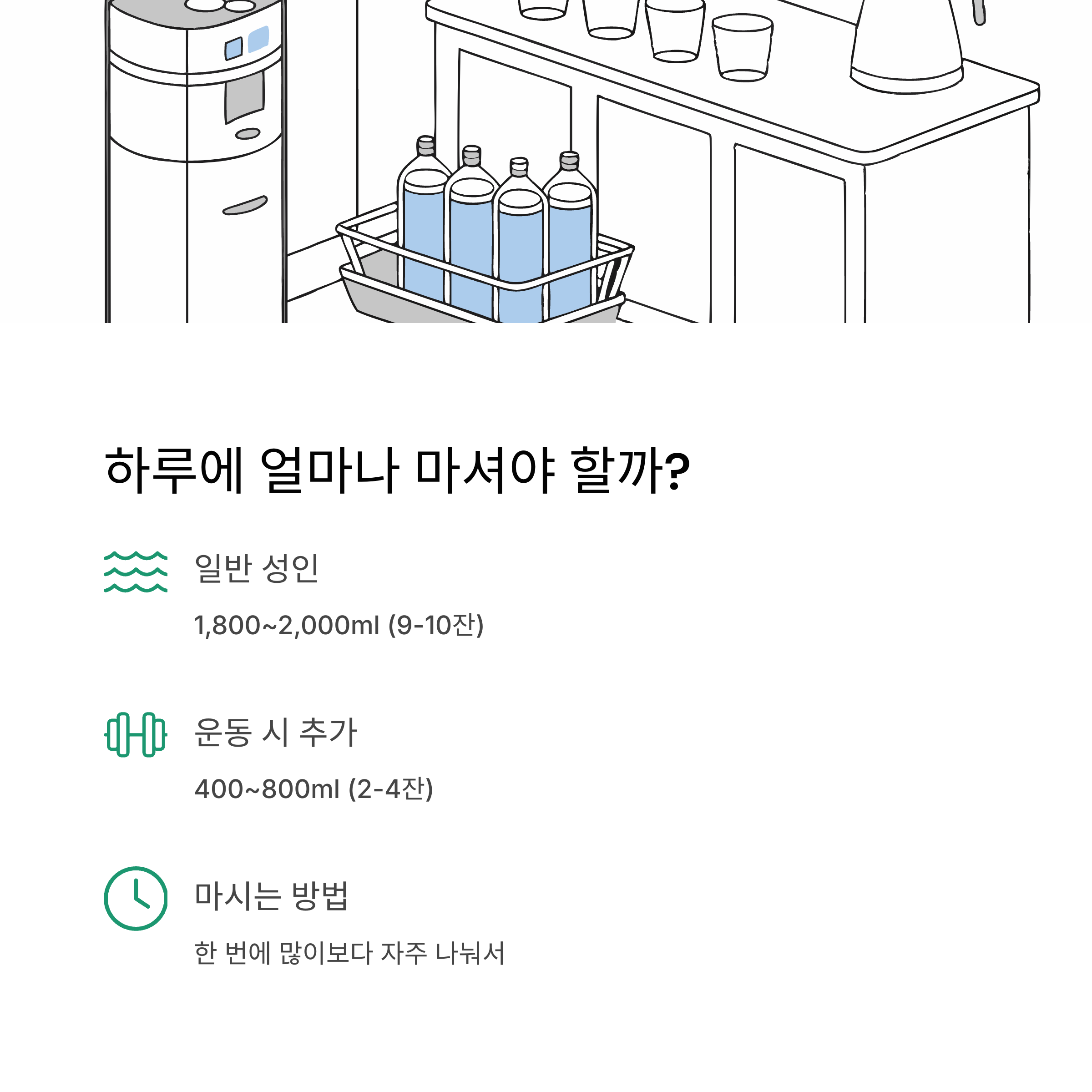 | 운동 시 추가 | 400~800ml(2~4잔 추가) |
