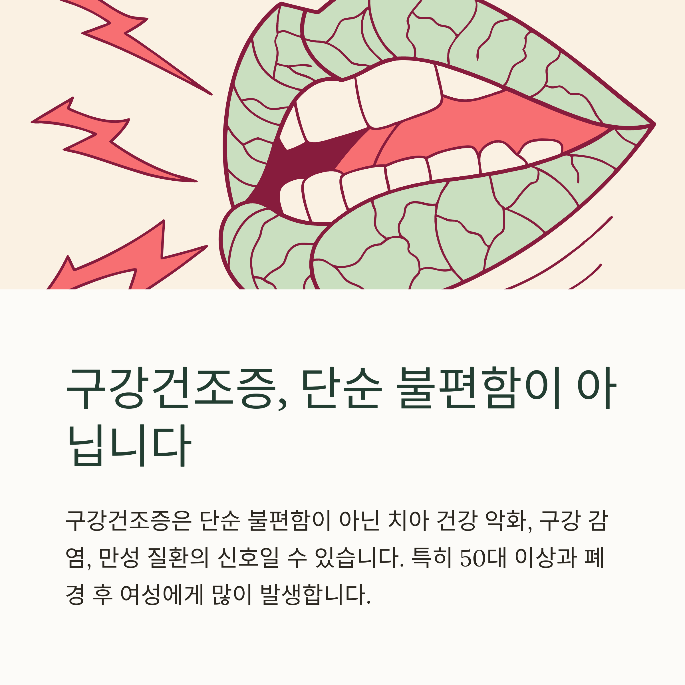 구강건조증은 입안이 마르고 불편한 증상에 그치지 않습니다.