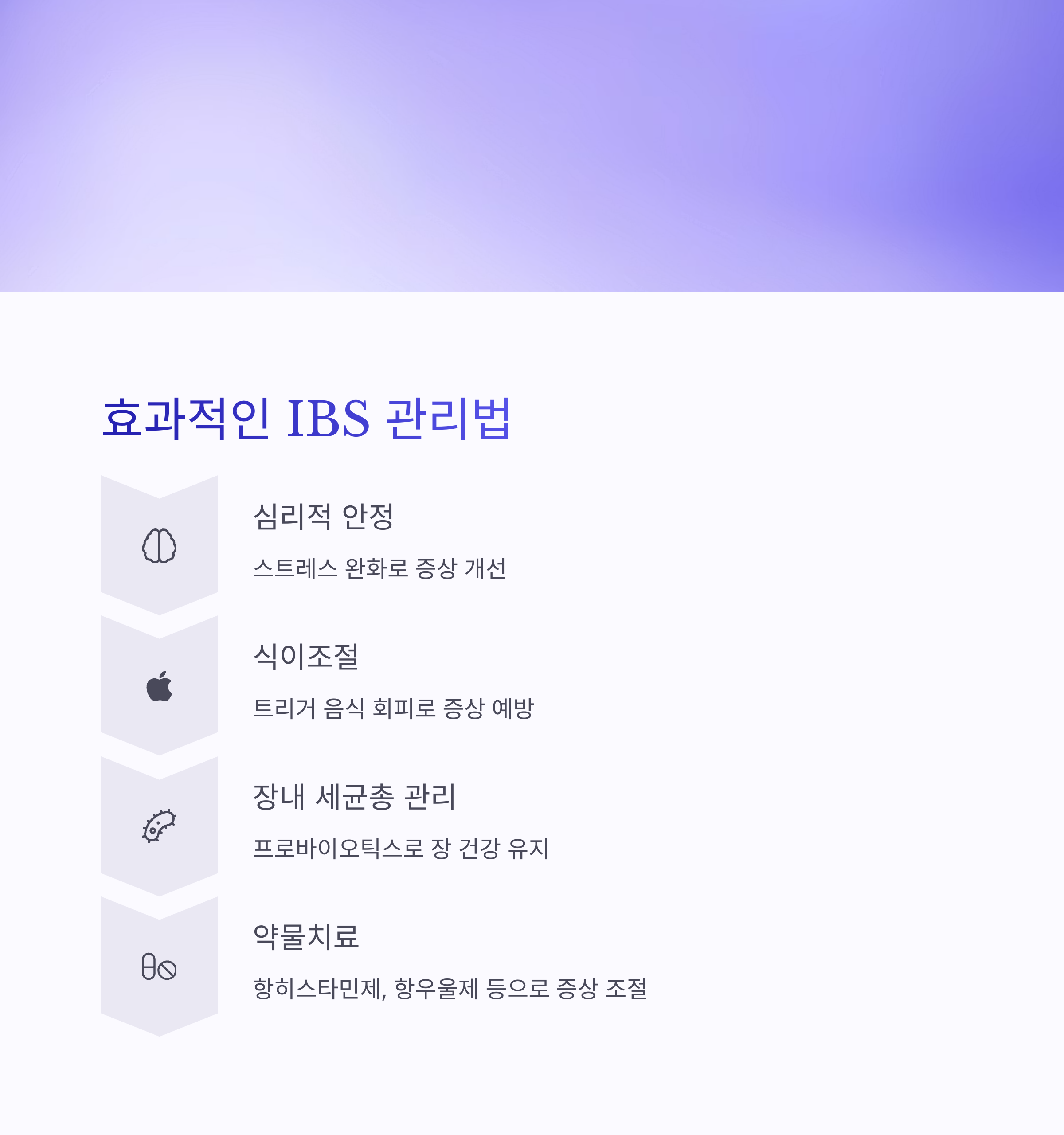 심리적 안정이 IBS 관리에 핵심적인 역할을 합니다.